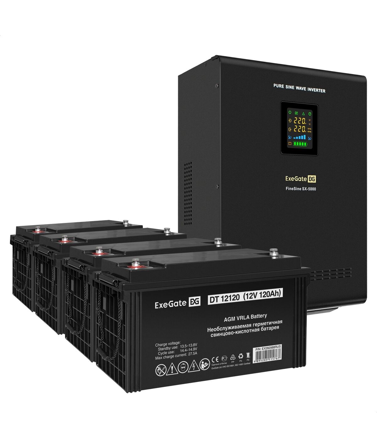 | Емкость батареи и количество батарей, В/Ач | ExeGate DT 12120 (12В/120Ач) 4 шт |