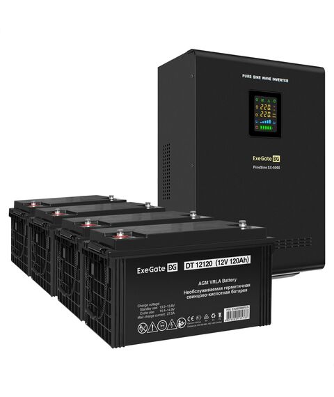 Комплект системы бесперебойного питания Exegate FineSine SX-5000 5000VA/3500W, цветной LCD-дисплей, AVR, 2*Schuko+клеммы, линейно-интерактивный, крепление настенное [EX296671RUS]