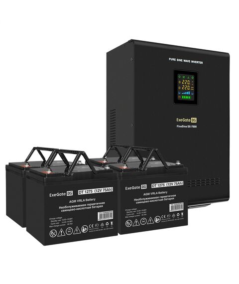 Комплект системы бесперебойного питания Exegate FineSine SX-7000 7000VA/5000W, цветной LCD-дисплей, AVR, 2*Schuko+клеммы, линейно-интерактивный, крепление настенное [EX296688RUS]