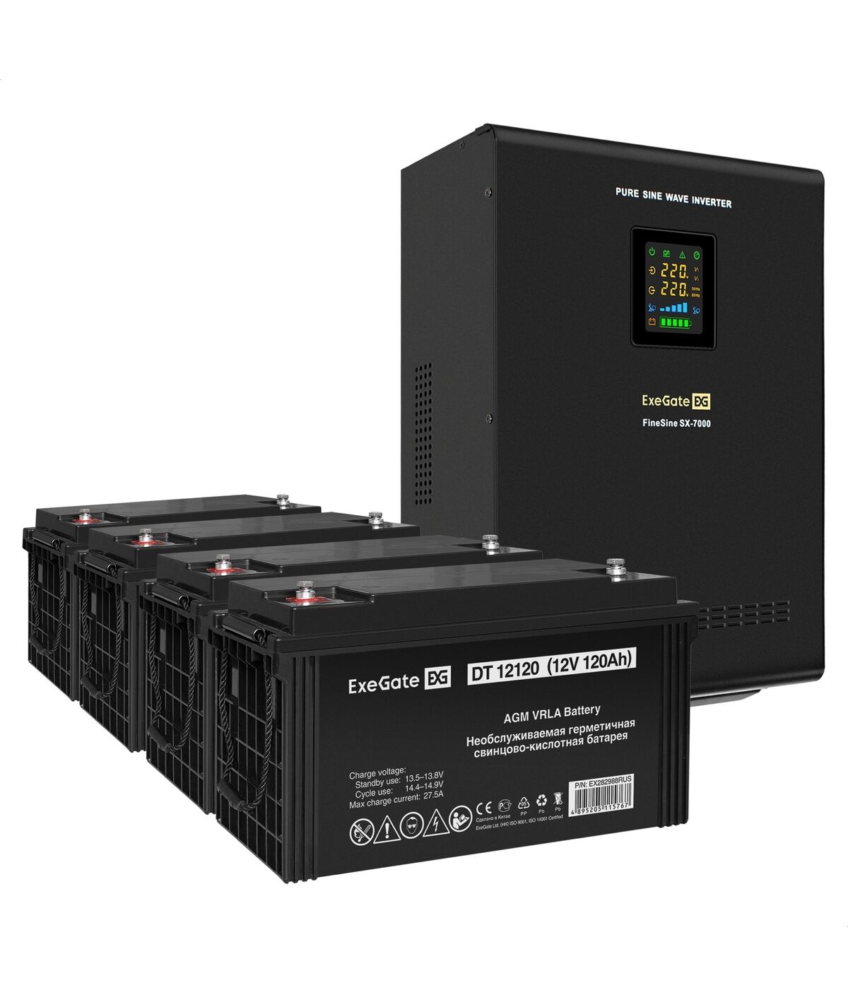 Комплект системы бесперебойного питания Exegate FineSine SX-7000 7000VA/5000W, чистая синусоида, цветной LCD-дисплей, AVR, 2*Schuko+клеммы, линейно-интерактивный, крепление настенное [EX296694RUS]