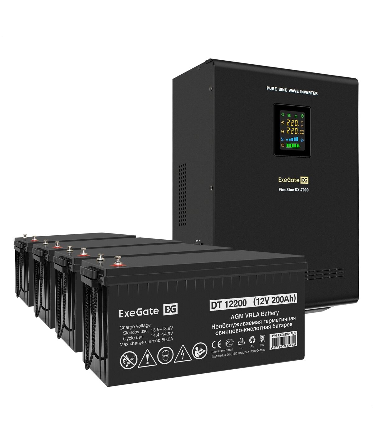 Комплект системы бесперебойного питания Exegate FineSine SX-7000 7000VA/5000W, чистая синусоида, цветной LCD-дисплей, AVR, 2*Schuko+клеммы, линейно-интерактивный, крепление настенное [EX296699RUS]