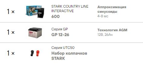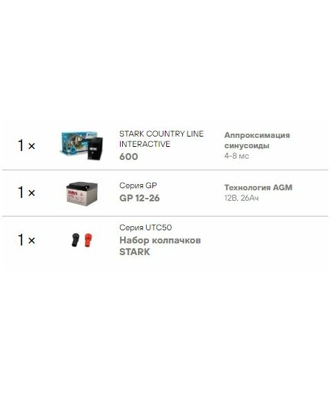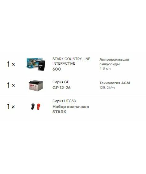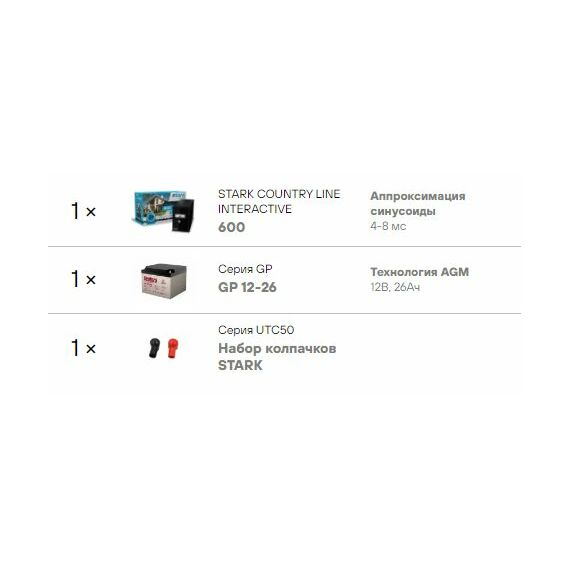 Комплект системы бесперебойного питания Stark Country 600 нагрузка 150Вт, автономия 1 час