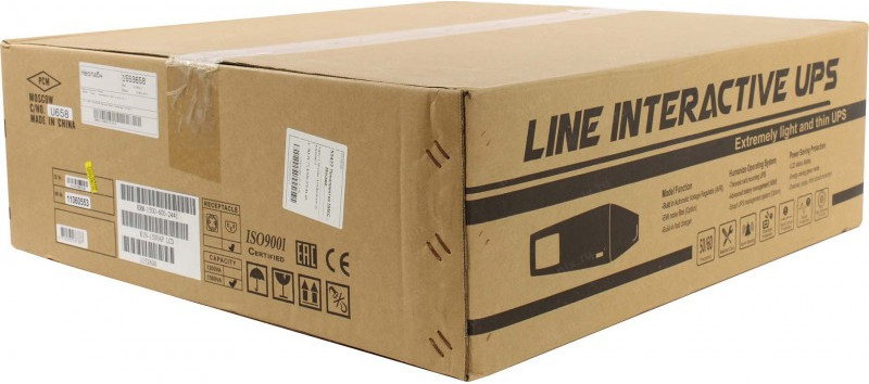 - ПО в комплекте: UPSMON (ведение журнала сбоев электропитания, отображение статуса ИБП, величины нагрузки, заряда батарей, автоматическое завершение работы)