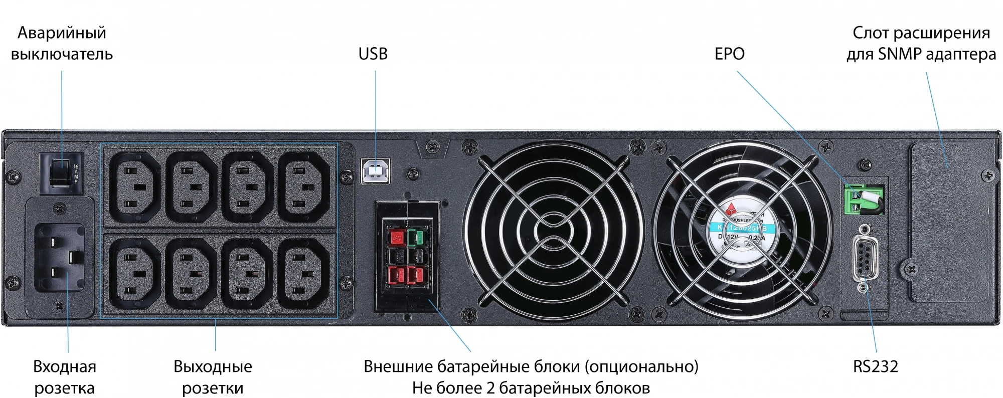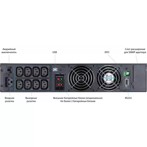 | Особенности ИБП | автотестирование батарей, горячая замена, поддержка SNMP |