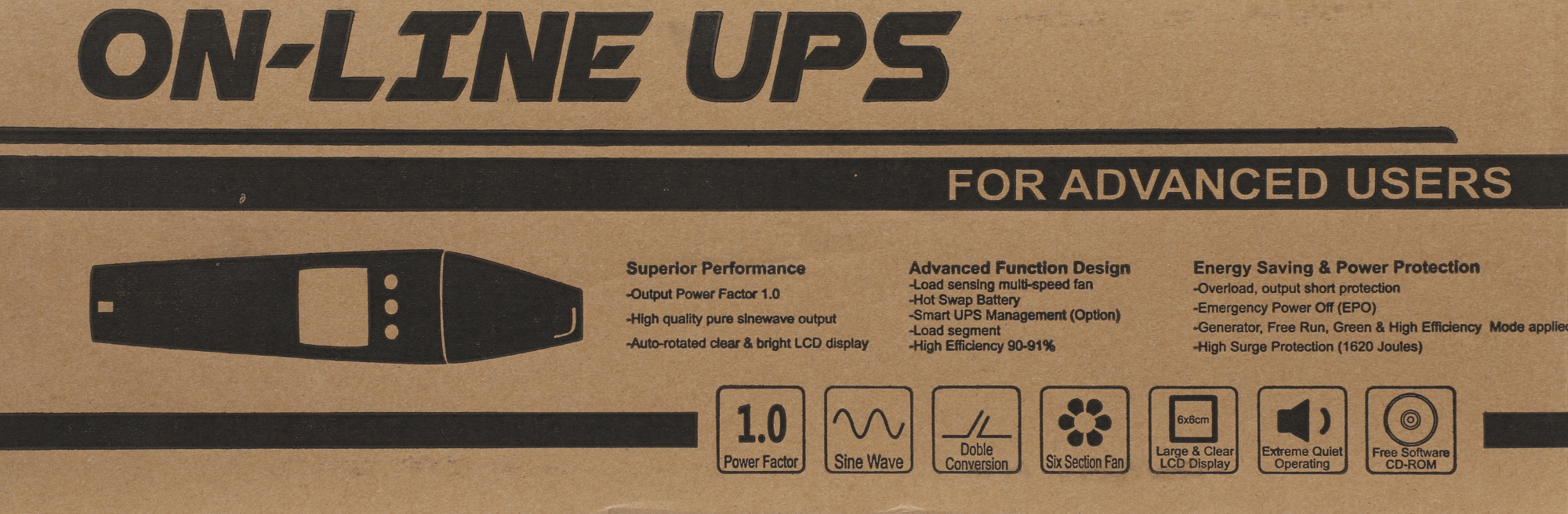 | Особенности ИБП | внешние аккумуляторные ячейки, горячая замена, поддержка SNMP |