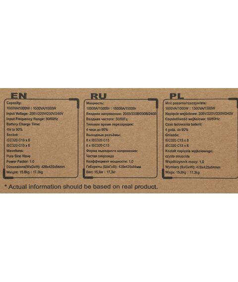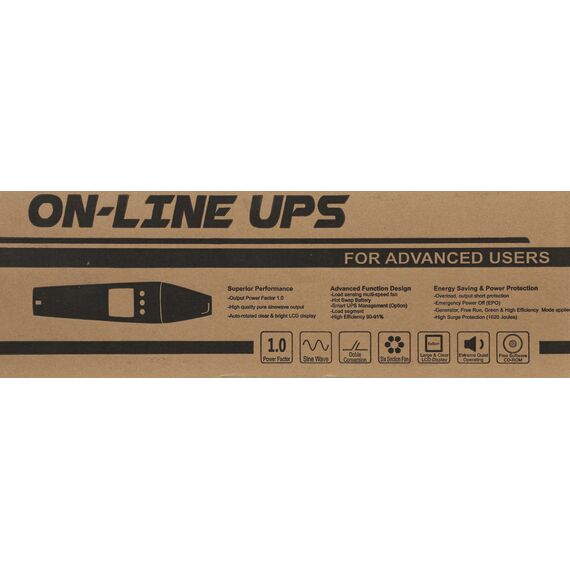 | Индикация состояния | Входное / выходное напряжение, частота входного / выходного напряжения; Режимы работы: нормальный, байпас, питание от батарей; уровень заряда батарей; уровень нагрузки; |