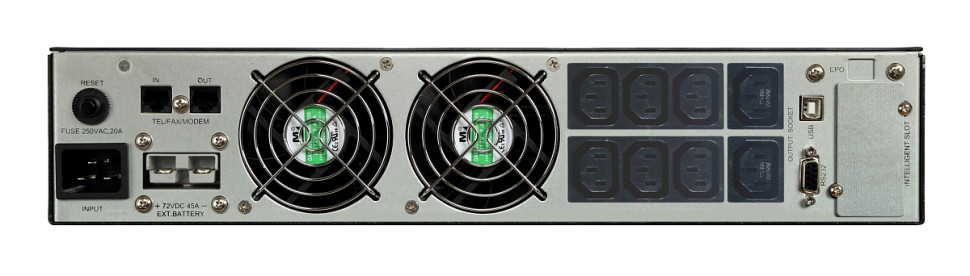 Источник спроектирован с учетом всех новейших разработок и решений в области построения систем бесперебойного энергоснабжения, обладает высоким выходным коэффициентом мощности, низким коэффициентом нелинейных искажений входного тока, высокой энергоэффективностью, отличается простотой управления и оригинальным дизайном. ИБП выполнен в универсальном корпусе RT, позволяющем устанавливать его горизонтально (в 19 дюймовые шкафы или стойки) либо вертикально (на пол).