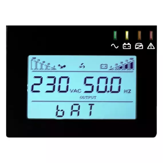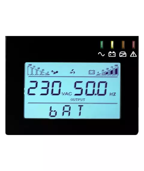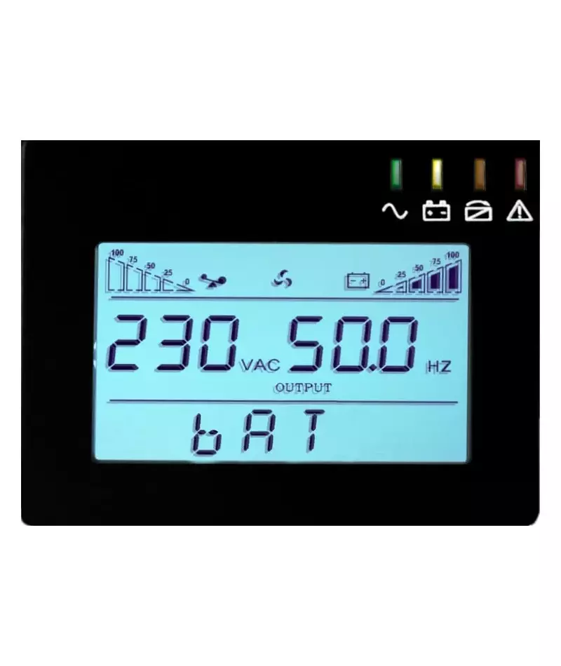 Вывод информации - параметры работы: напряжение, частота, уровень нагрузки, температура, уровень заряда батарей. Включение/выключение системы.