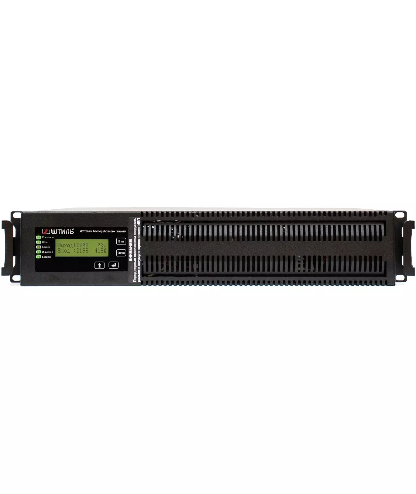 | Индикация состояния | отображение рабочего состояния системы и основных входных и выходных параметровСветодиодная индикация состояние, сеть, байпас, инвертор, батареи |