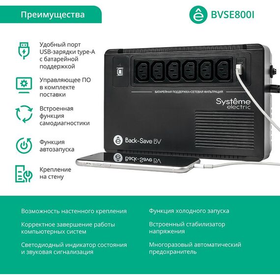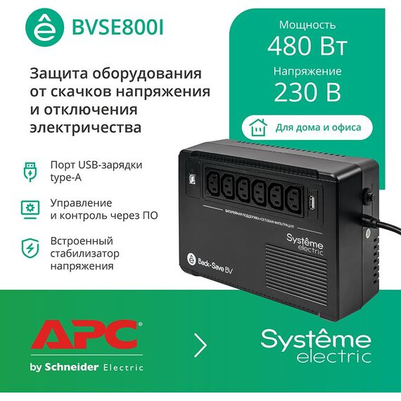 Источник бесперебойного питания Systeme Electric BVSE800I 480Вт 800ВА черный