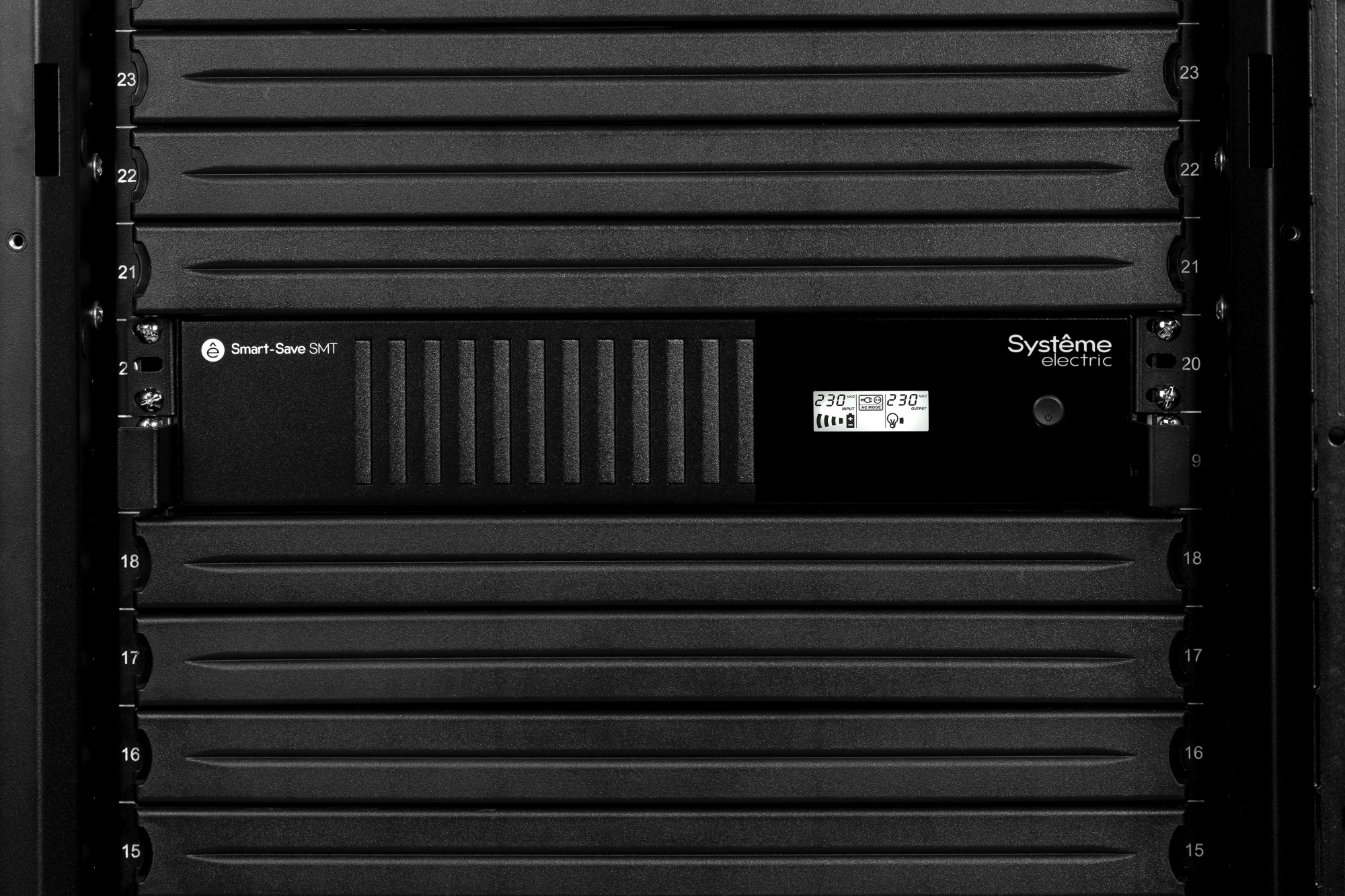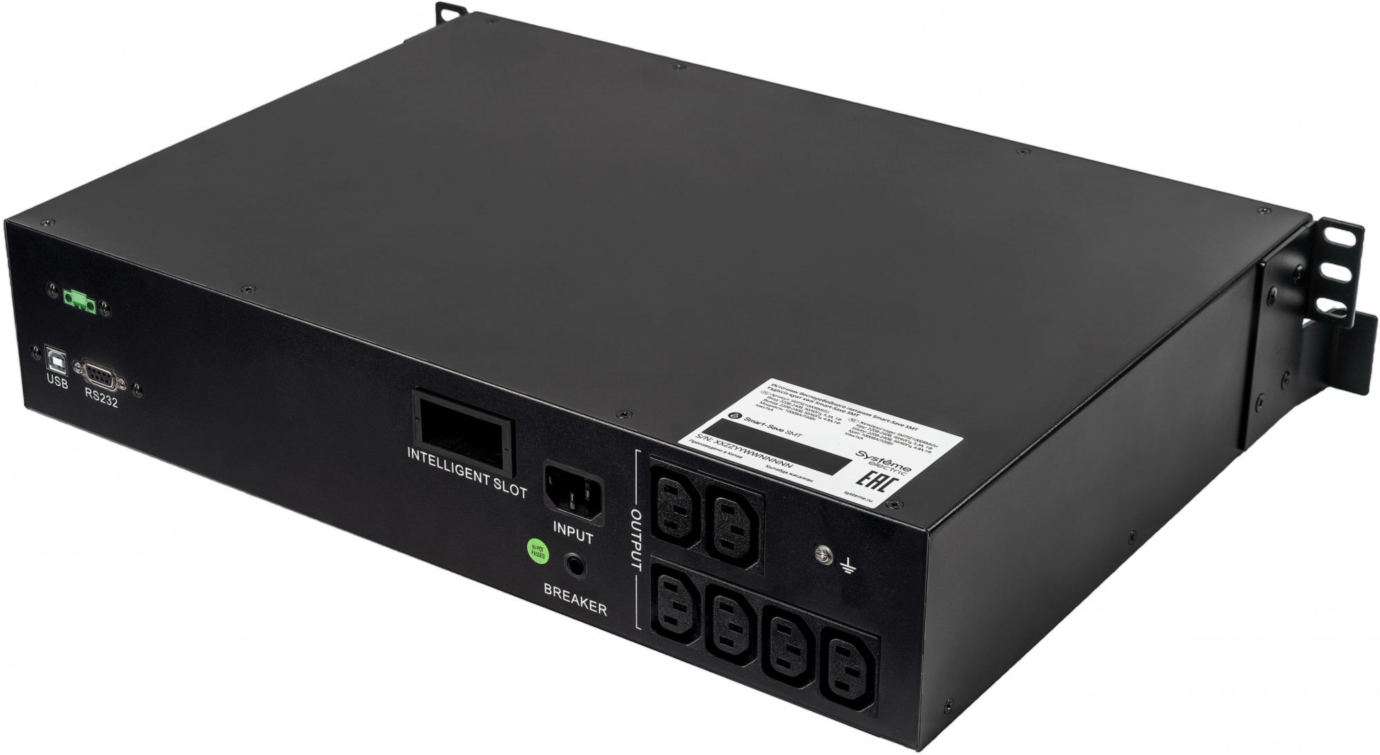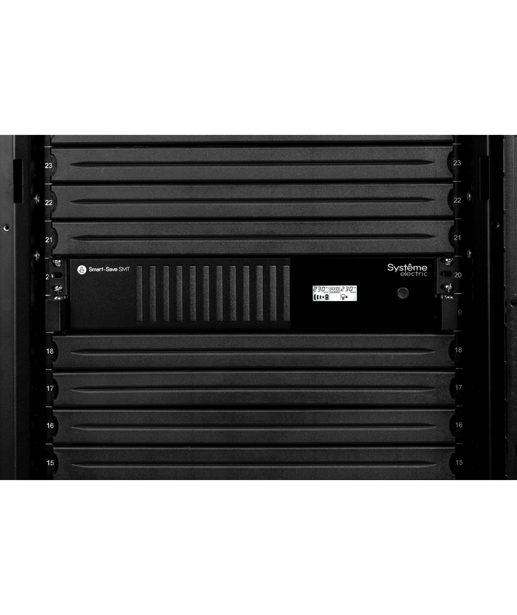 Источник бесперебойного питания Systeme Electric SMTSE1000RMI2U Smart-Save SMT, 1000VA/720W, RM 2U, Line-Interactive, LCD, Out: 230V 6xC13, SNMP Intelligent Slot, USB, RS-232
