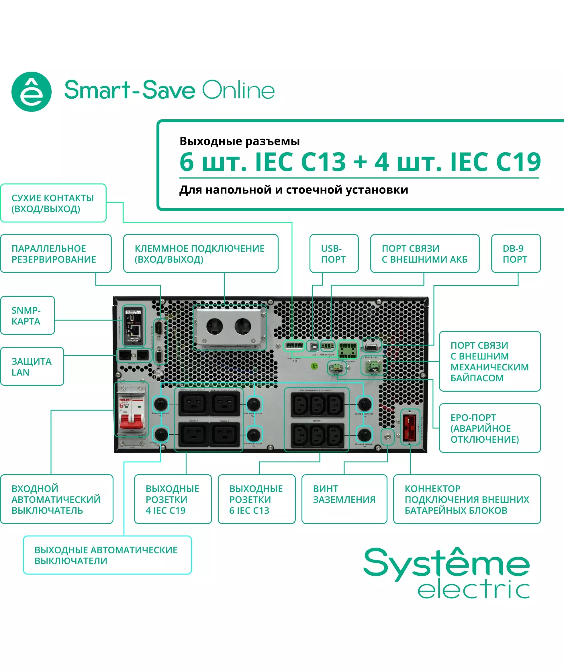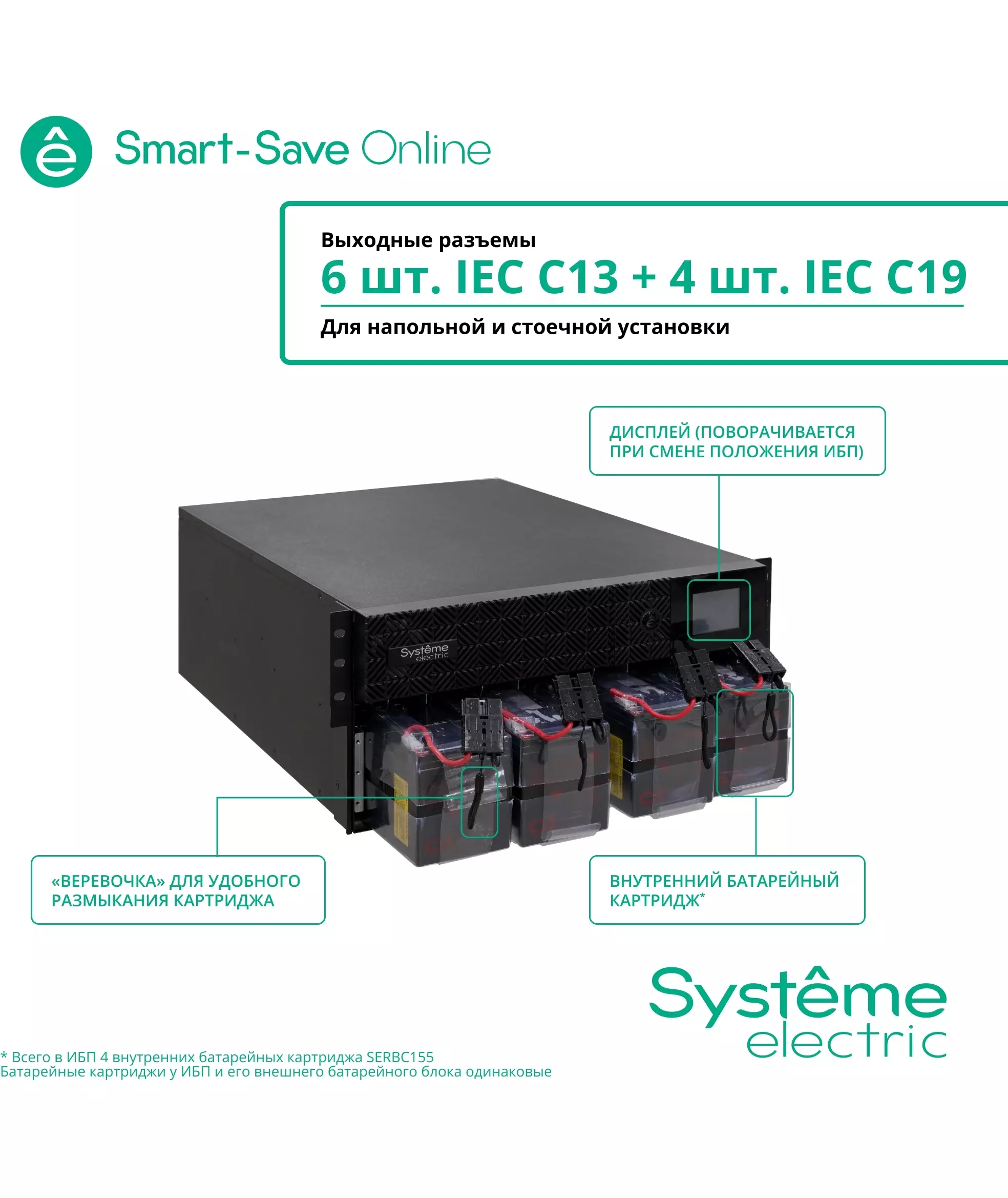 Источник бесперебойного питания Systeme Electric SRT SRTSE6KRTXLIEC-NC 6000Вт 6000ВА черный RTL [SRTSE6KRTXLIEC-NC]