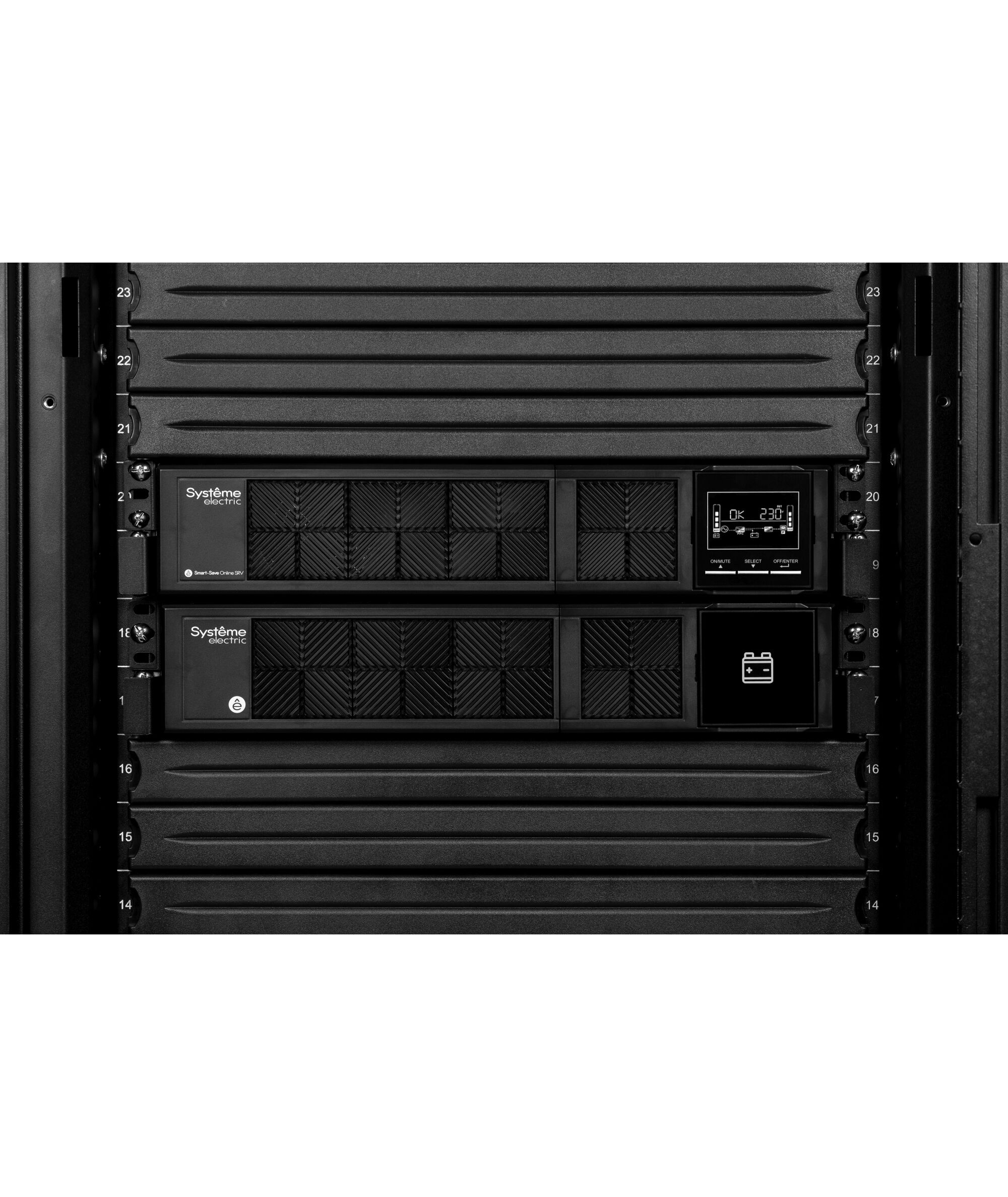 Источник бесперебойного питания Systeme Electric SRVSE1KRTXLI Smart-Save Online SRV, 1000VA/900W, On-Line, Extended-run, Rack/Tower 4U(2U PM + 2U Battery), LCD, Out: 6xC13, SNMP Intelligent Slot, USB, RS-232