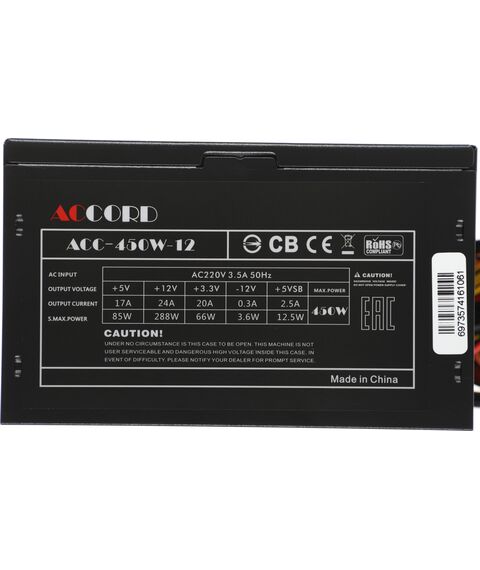 Блок питания Accord ACC-450-12 ATX 450W (24+4pin) 120mm fan 4xSATA