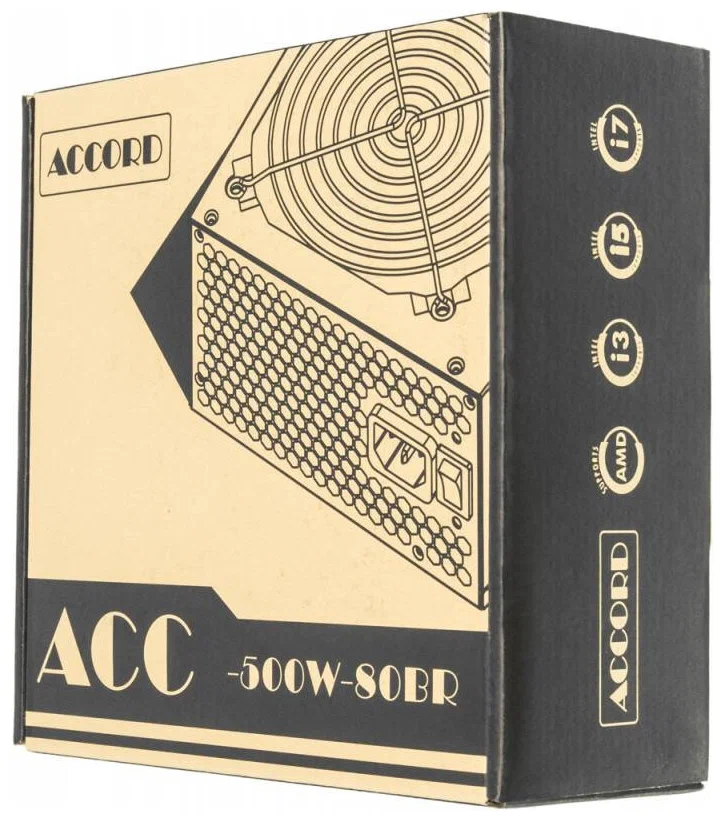 Блок питания Accord ACC-500W-80BR ATX 500W 80+ bronze (24+4+4pin) 120mm fan 6xSATA RTL