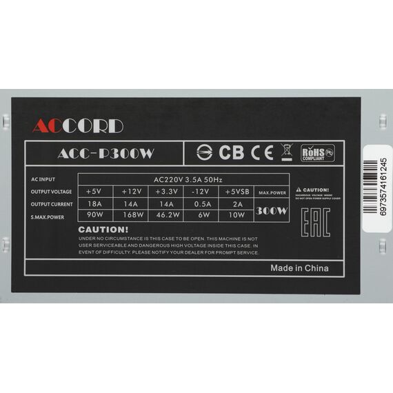 Блок питания Accord ACC-P300W ATX 300W (20+4pin) 80mm fan 3xSATA