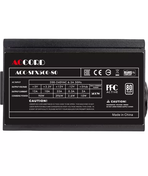 Блок питания Accord ACC-SFX500-80 SFX 500W 24pin APFC 80mm fan 3xSATA RTL