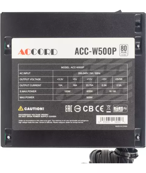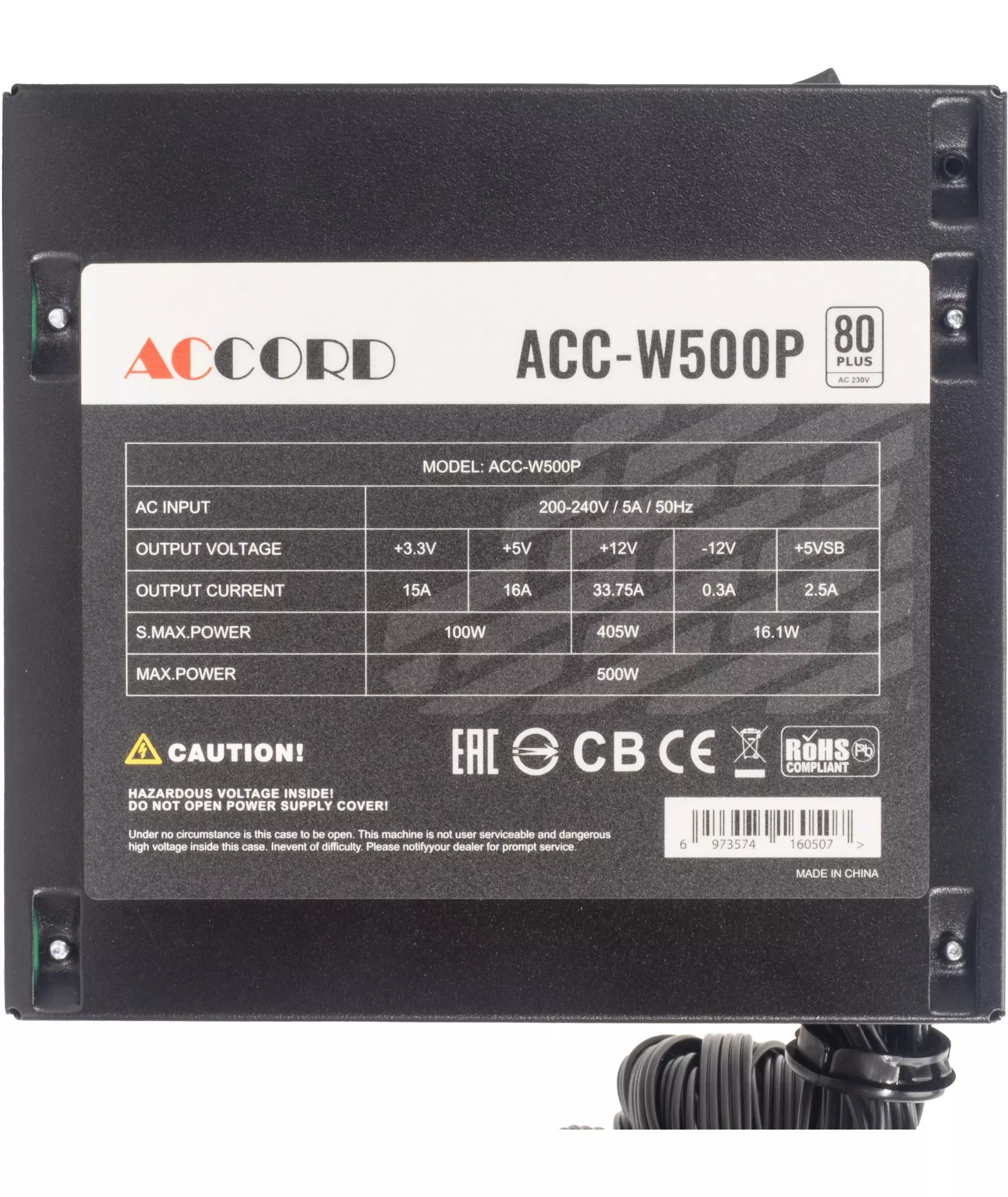 Блок питания Accord ACC-W500P ATX 500W 80 PLUS WHITE (20+4pin) 120mm fan 6xSATA