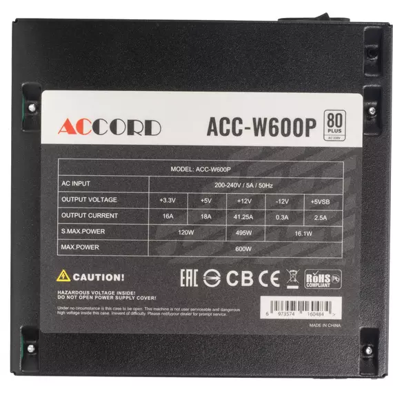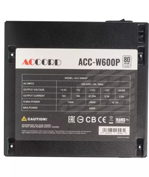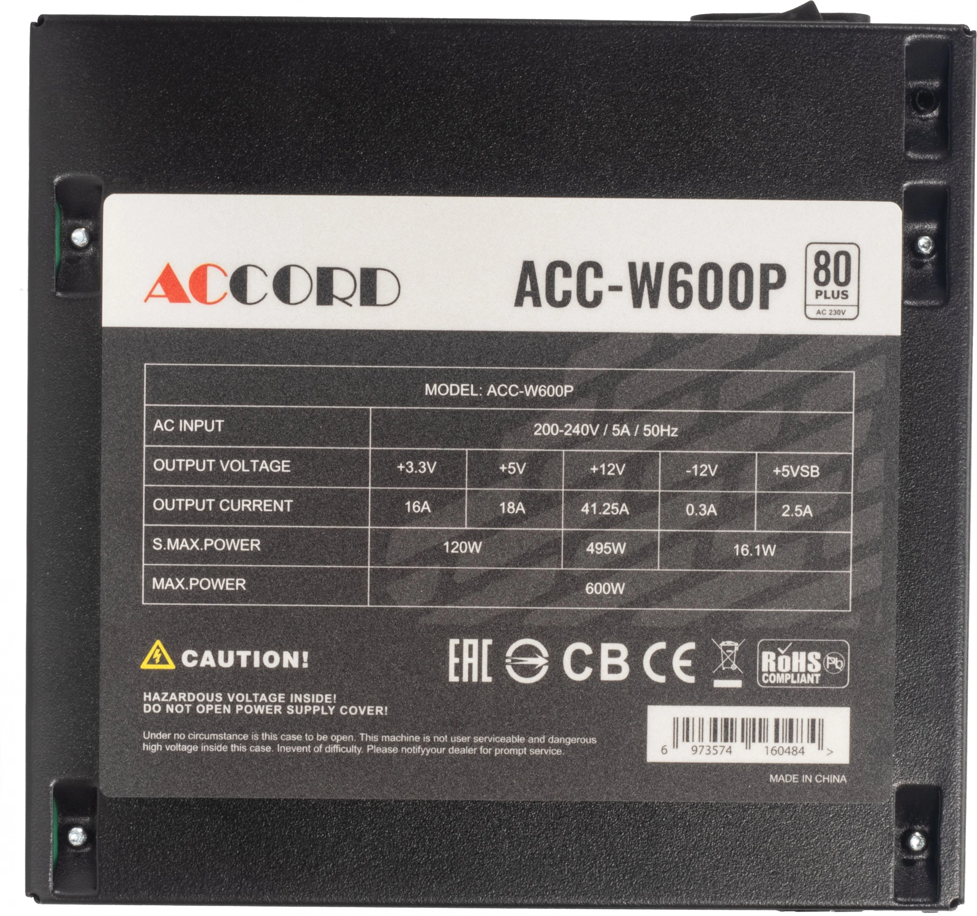 Блок питания Accord ACC-W600P ATX 600W 80 PLUS WHITE (20+4pin) 120mm fan 6xSATA