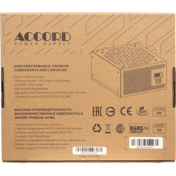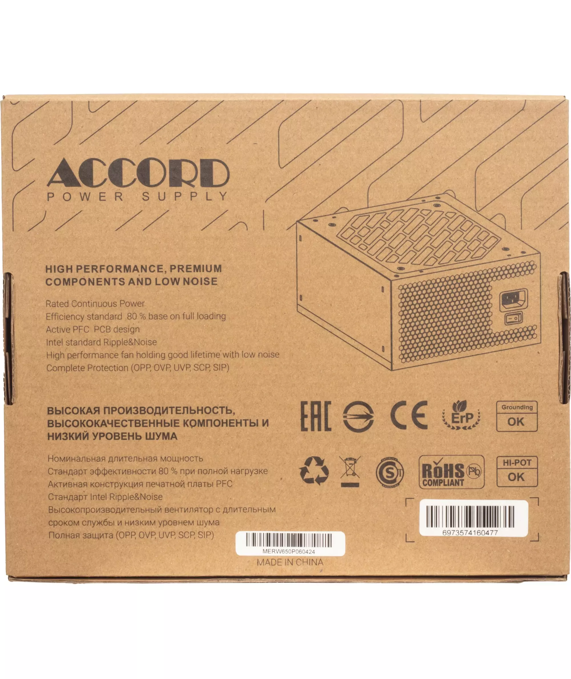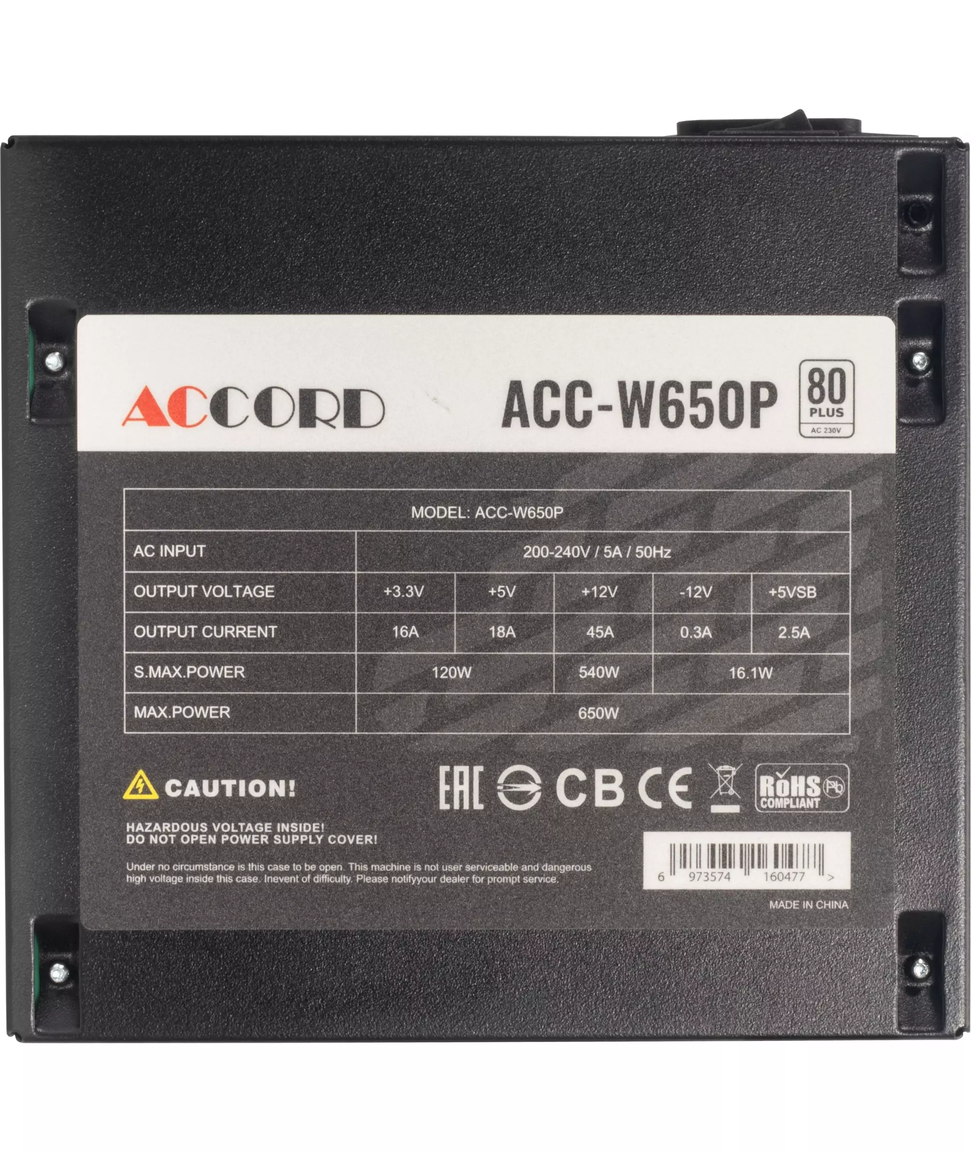 Блок питания Accord ACC-W650P ATX 650W 80 PLUS WHITE (20+4pin) 120mm fan 6xSATA RTL