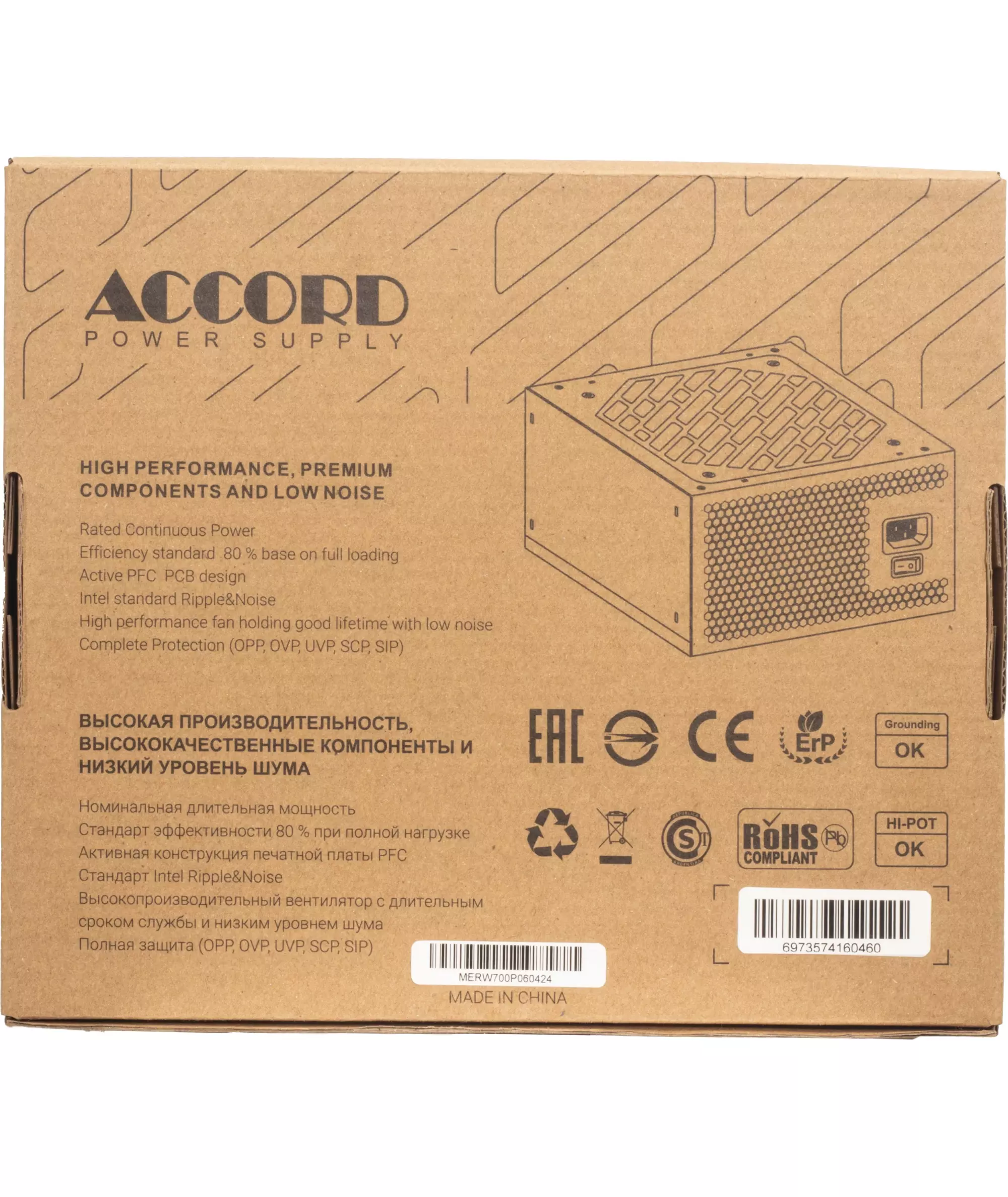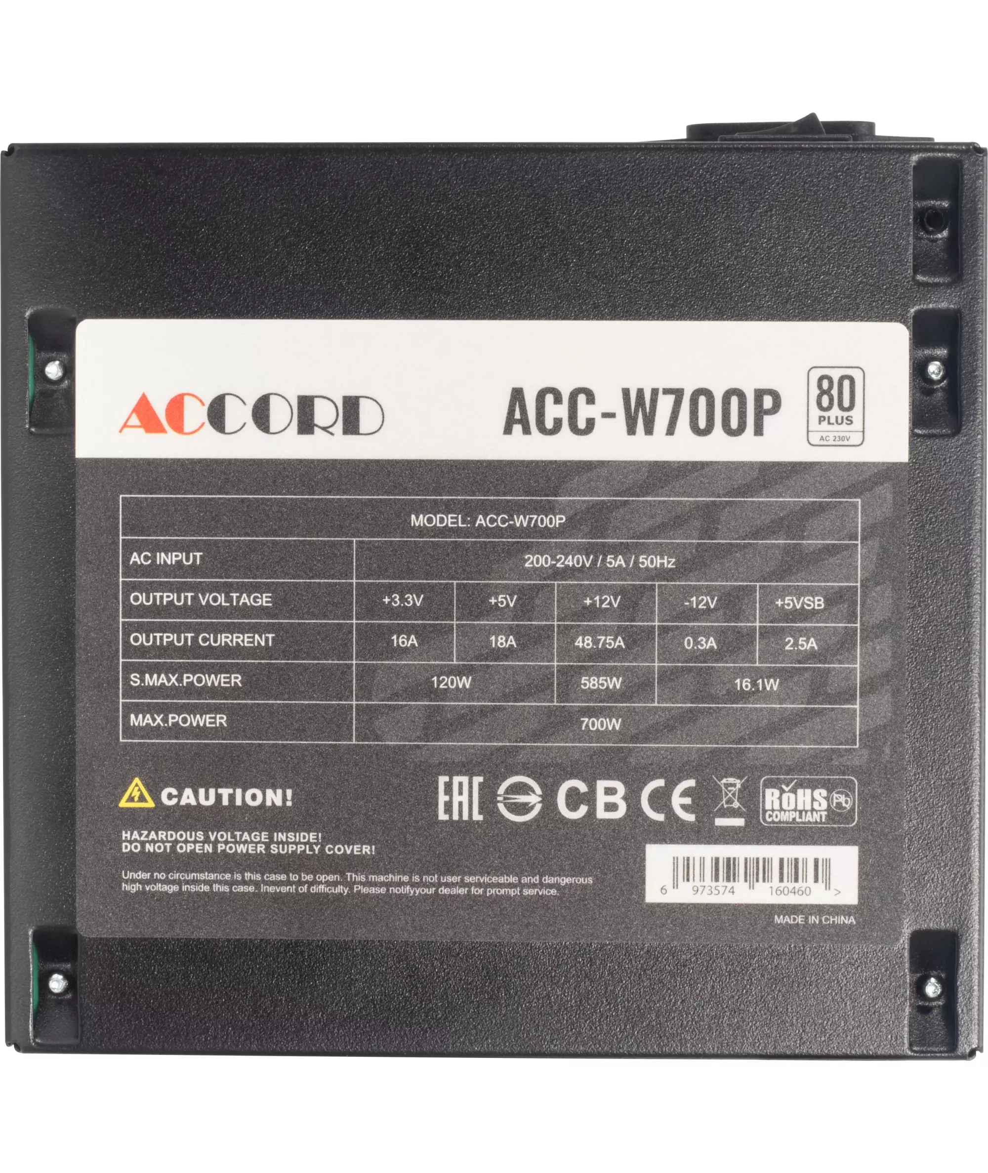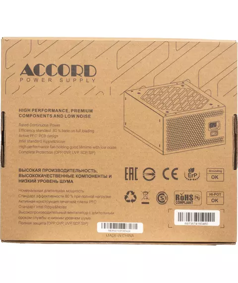 Блок питания Accord ACC-W700P ATX 700W 80 PLUS WHITE (20+4pin) 120mm fan 6xSATA RTL