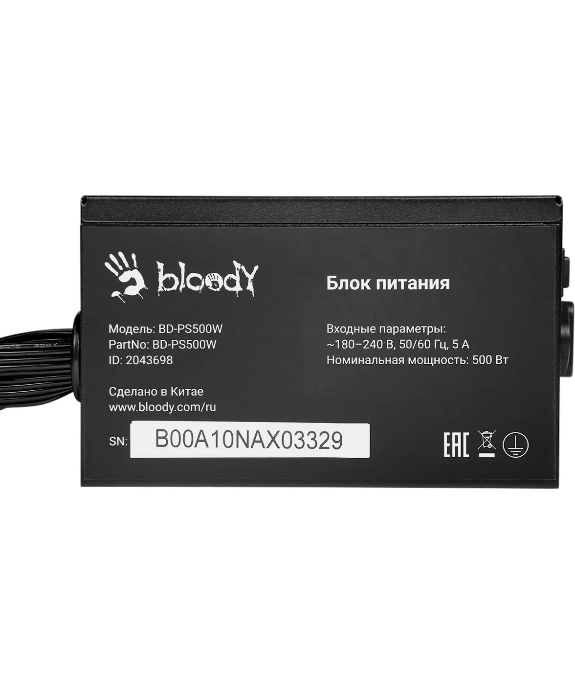 Блок питания Bloody BD-PS500W ATX 500W 80 PLUS WHITE (20+4pin) APFC 120mm fan 6xSATA RTL