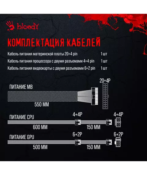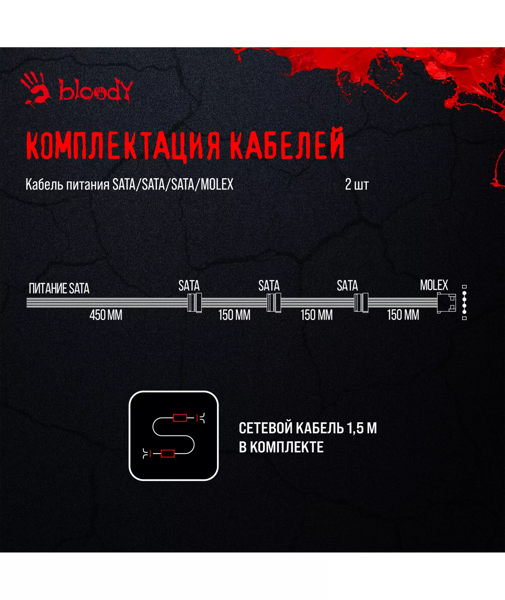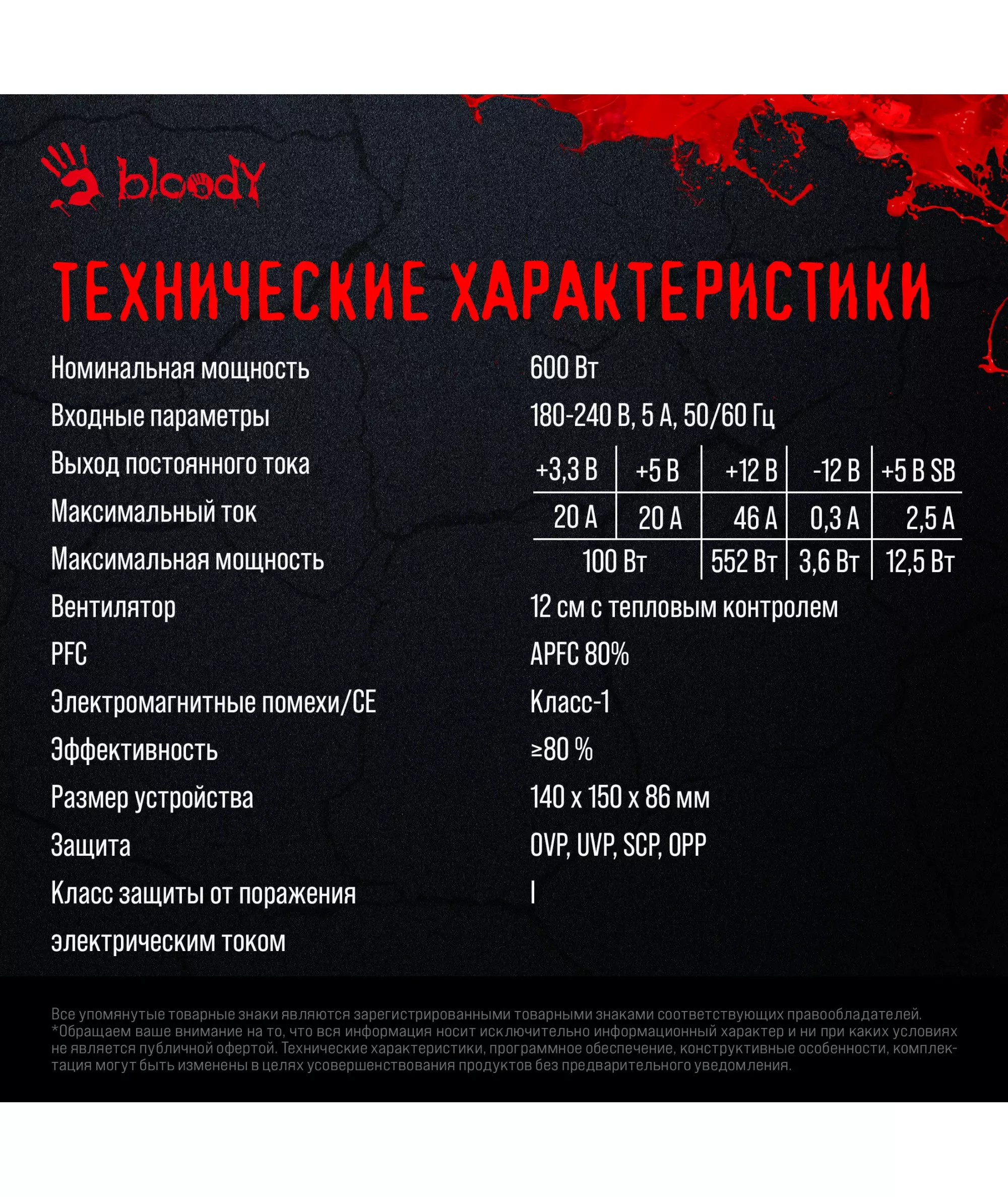 Блок питания Bloody BD-PS600W ATX 600W 80 PLUS WHITE (20+4pin) APFC 120mm fan 6xSATA RTL