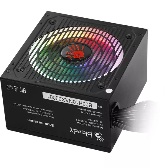 Блок питания Bloody BD-PS700W-R ATX 700W 80 PLUS WHITE (20+4pin) APFC 120mm fan color LED 6xSATA RTL