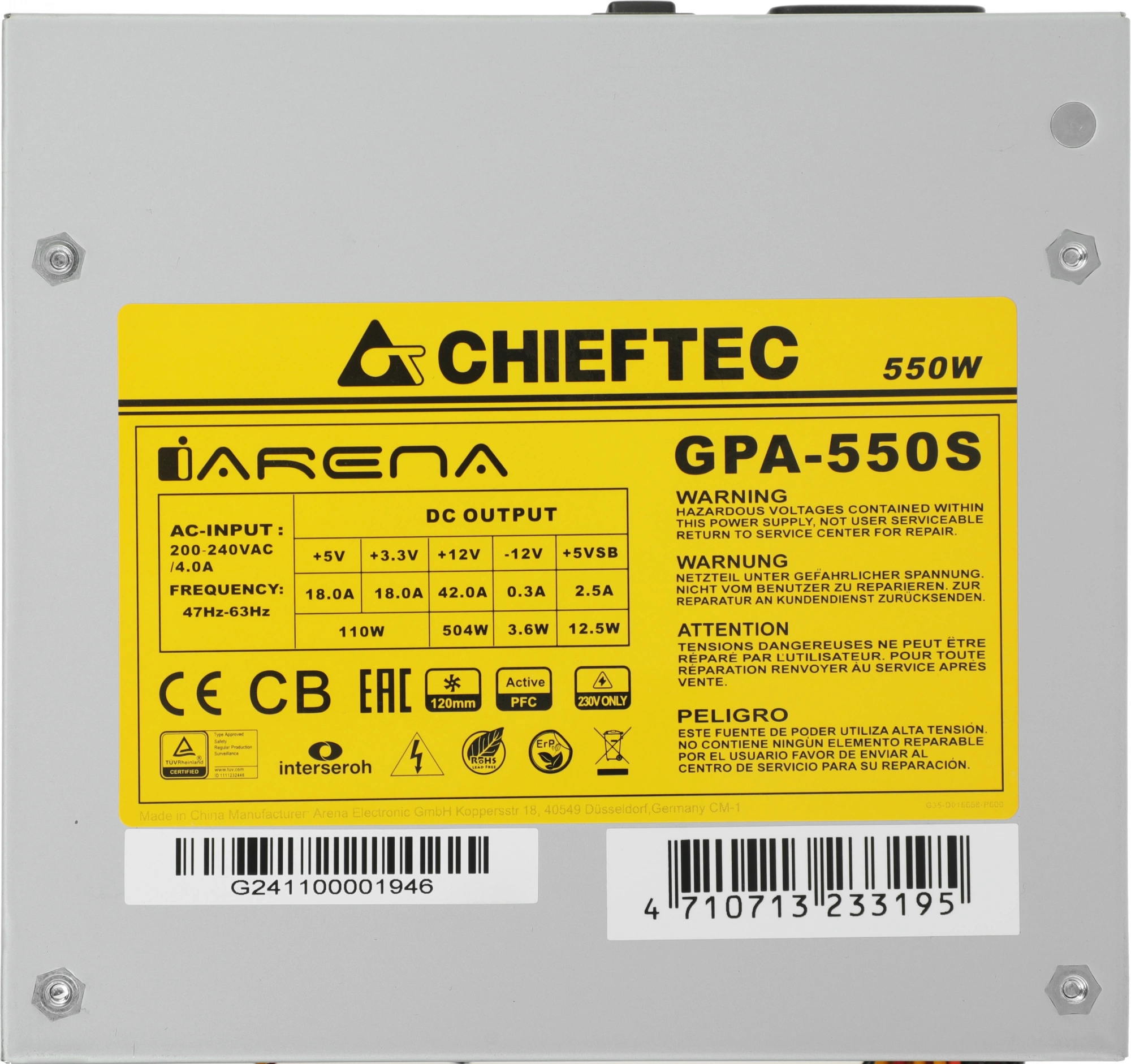 Описание Chieftec ATX 550W iArena [GPA-550S]