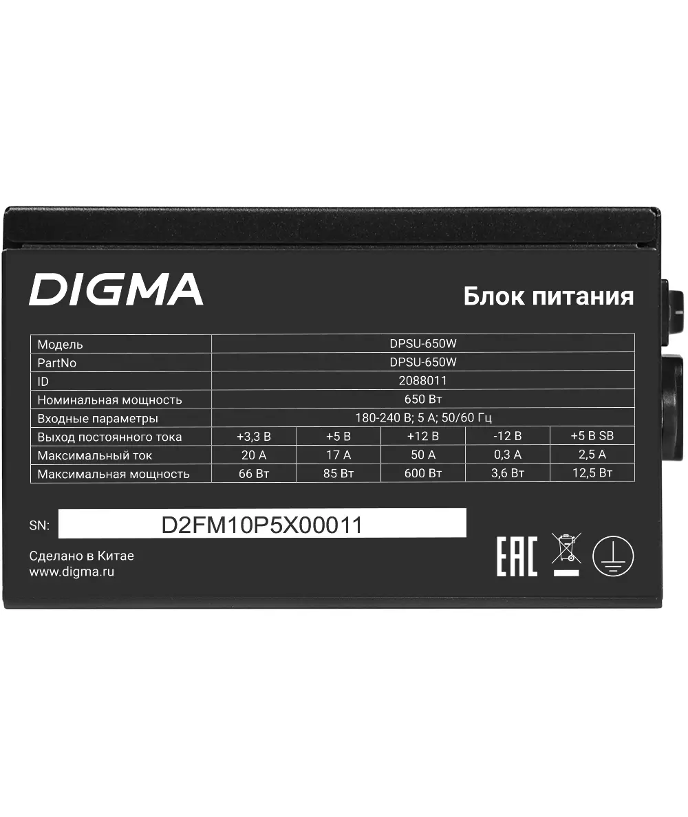 Блок питания Digma DPSU-650W ATX 650W (20+4pin) 120mm fan 4xSATA RTL