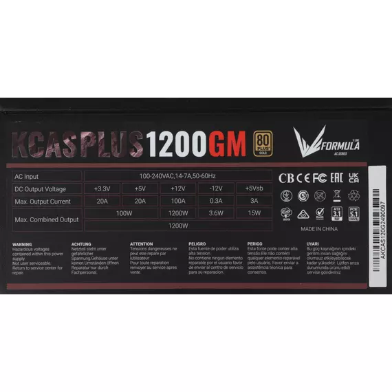 Описание Formula ATX 1200W AC KCAS PLUS 1200GM V2 ACPG-KPK2FEC.12