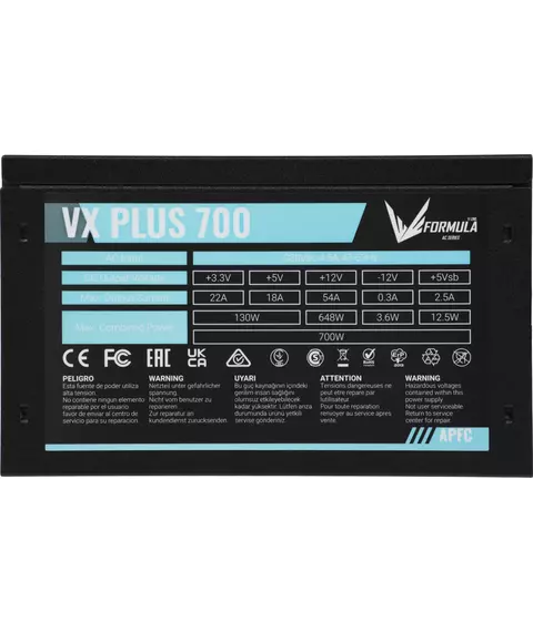 Блок питания Formula ATX 700W AC KCAS PLUS 80+ bronze (20+4pin) APFC 120mm fan 7xSATA RTL [KCAS-700W PLUS]