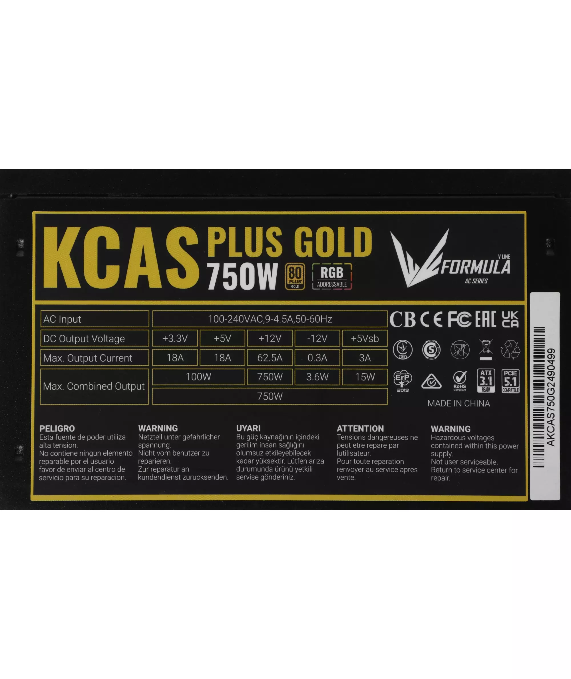 Описание Formula ATX 750W AC KCAS PLUS GOLD 750W RGB [KCAS PLUS 750G]