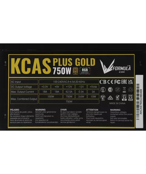 Блок питания Formula ATX 750W AC KCAS PLUS GOLD 750W RGB 80+ gold (20+4pin) APFC 120mm fan color LED 8xSATA RTL [KCAS PLUS 750G]