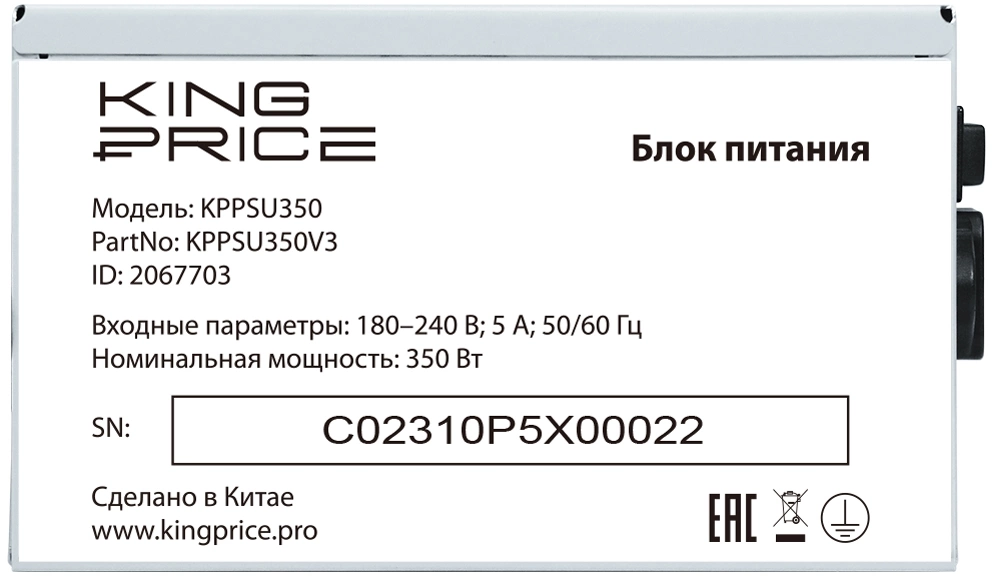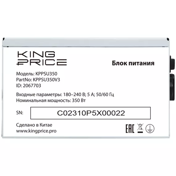 Блок питания KingPrice KPPSU350V3 ATX 350W (20+4pin) 120mm fan 2xSATA