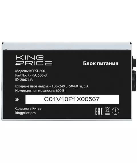 Блок питания KingPrice KPPSU600V3 ATX 600W (20+4pin) 120mm fan 4xSATA