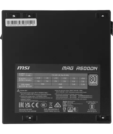 Описание MSI ATX 500W MAG A500DN [306-7ZP6A11-809]