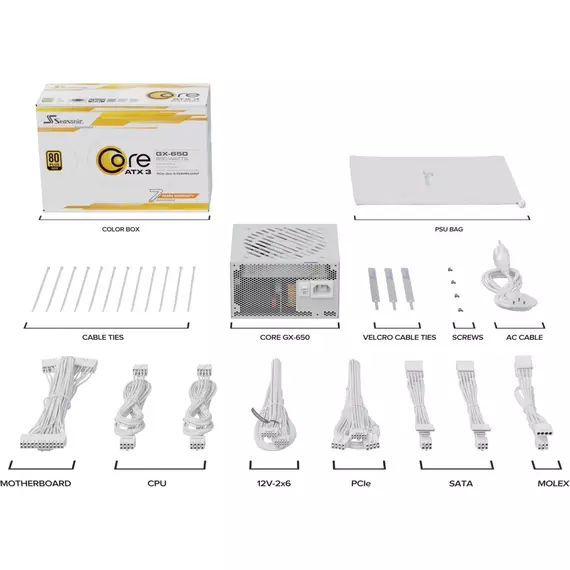 Блок питания Seasonic Core GX-650 ATX 650W 80+ gold (20+4pin) APFC 120mm fan 6xSATA Cab Manag RTL [CORE V3 GX-650 3.1 W]