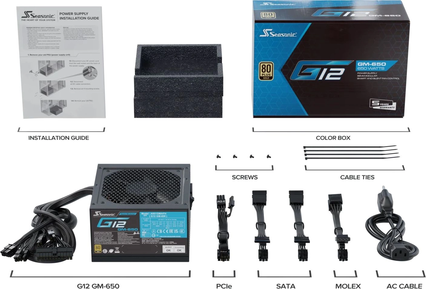 Блок питания Seasonic GM-650 ATX 650W 80+ gold (20+4pin) APFC 120mm fan 6xSATA RTL [SSR-650FM]