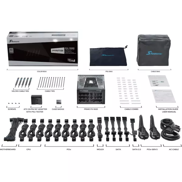 Блок питания Seasonic PX-1600 Prime ATX 1600W Prime Gen.5 80+ platinum (20+4pin) APFC 135mm fan 18xSATA Cab Manag RTL [SSR-1600PD2]