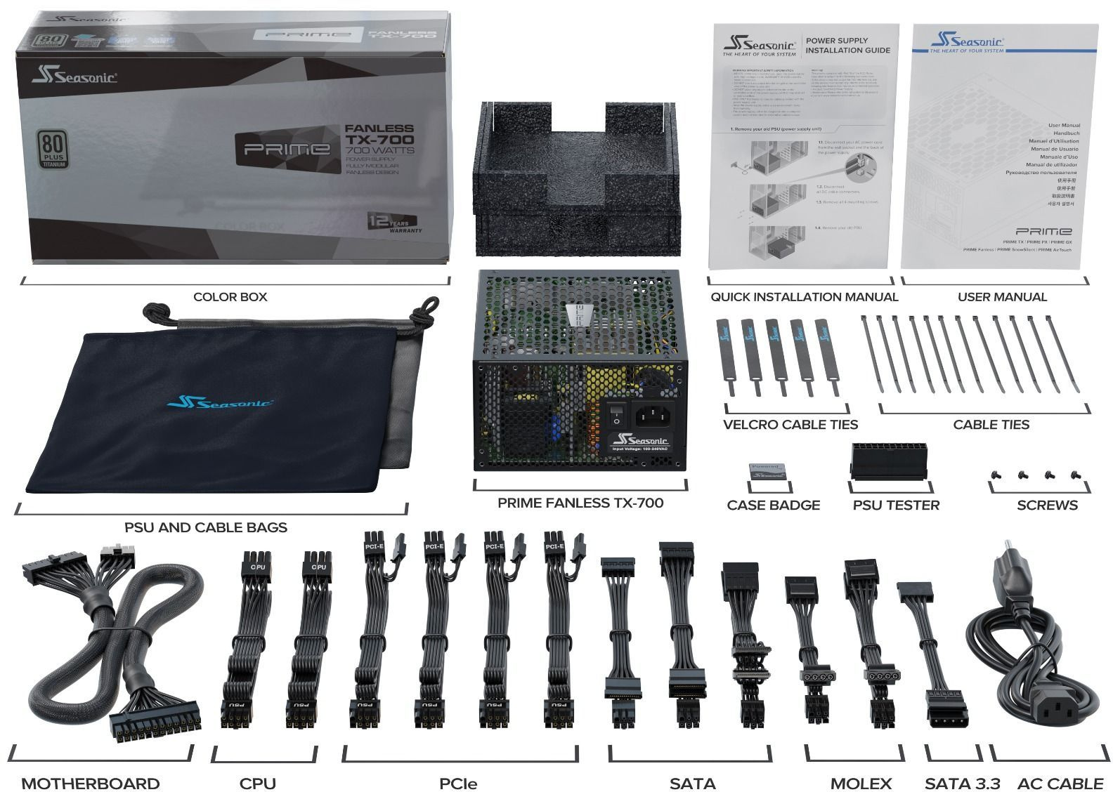 Блок питания Seasonic TX-700 PRIME Fanless ATX 700W PRIME Fanless 80+ titanium (20+4pin) APFC 10xSATA Cab Manag RTL [SSR-700TL]