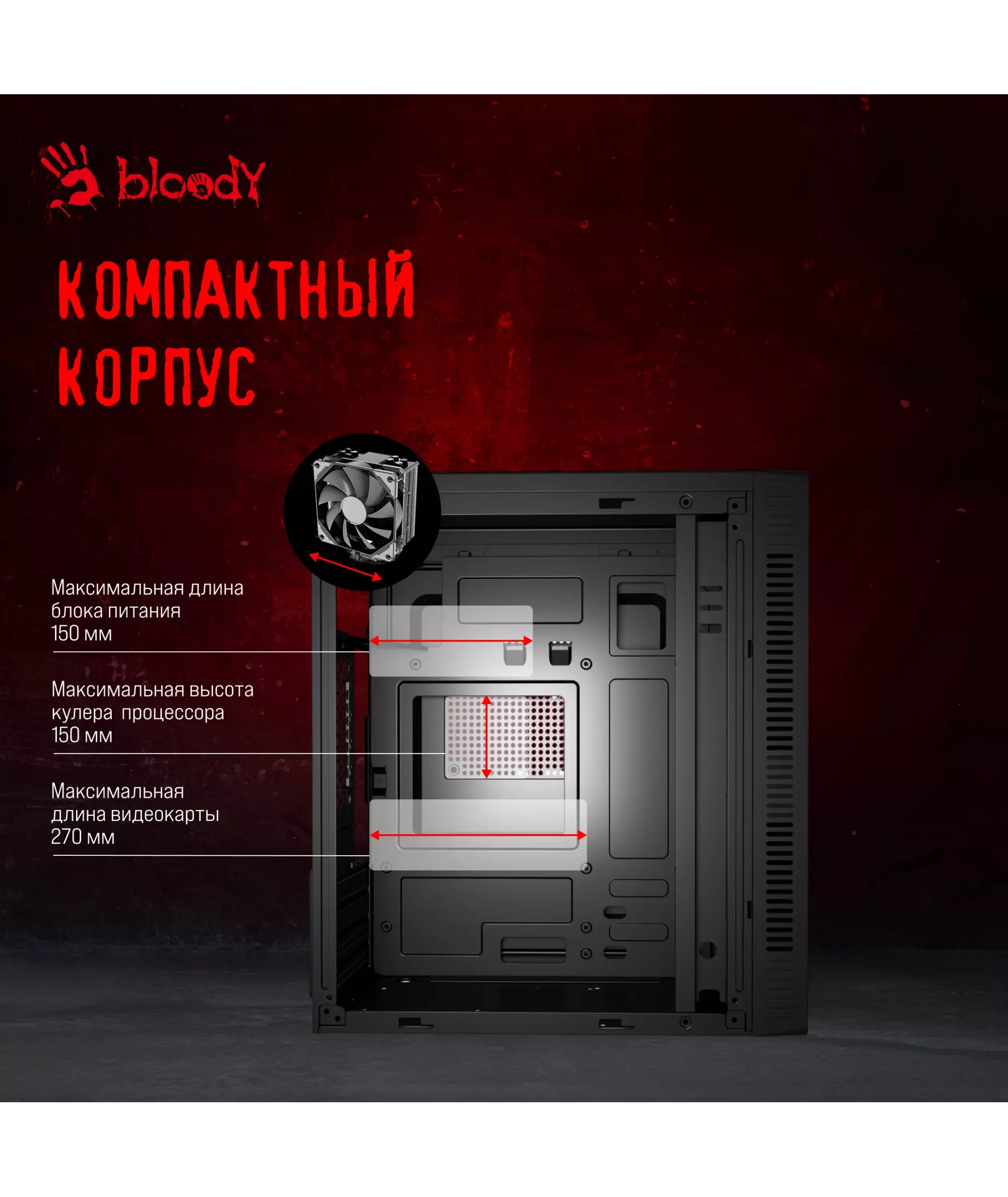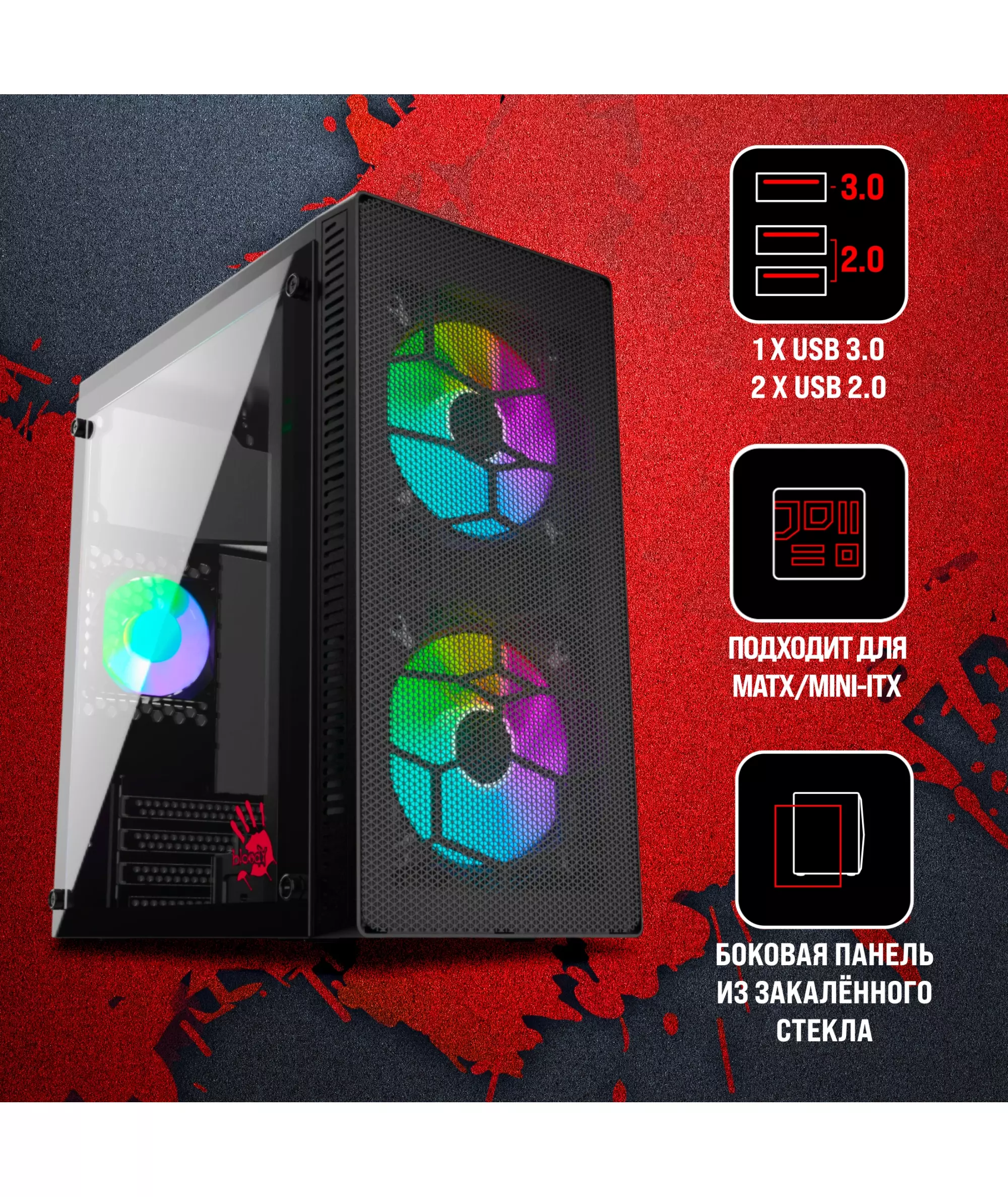 Корпус Bloody BD-CC101 черный без БП mATX 1x80mm 1x92mm 2x120mm 2xUSB2.0 1xUSB3.0 audio [BD-CC101-BK]
