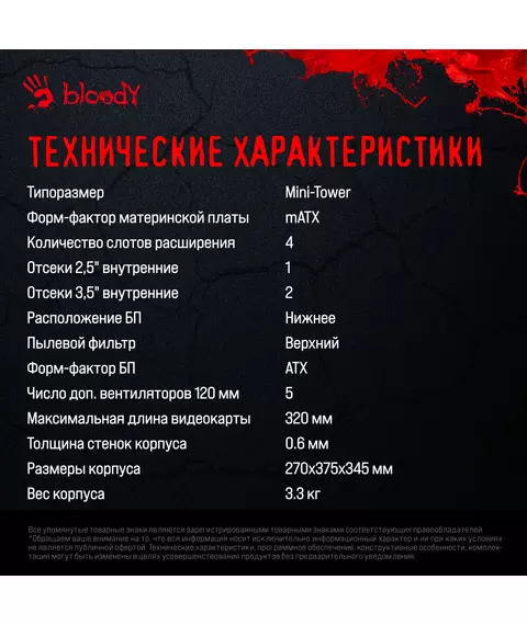 Корпус Bloody BD-CC105-BK черный без БП mATX 5x120mm 1xUSB2.0 1xUSB3.0 audio bott PSU