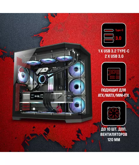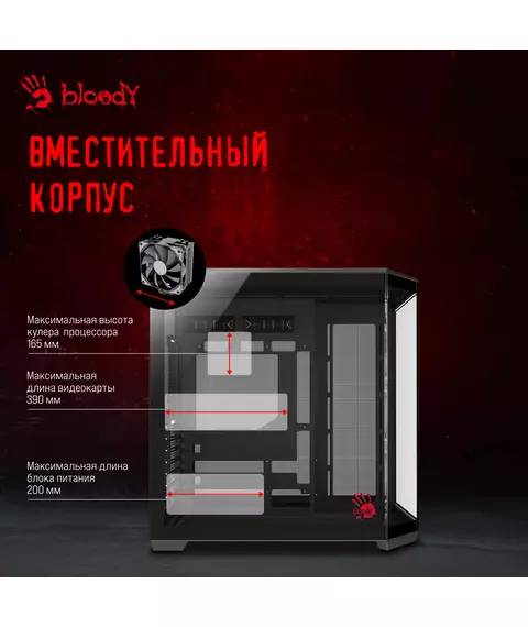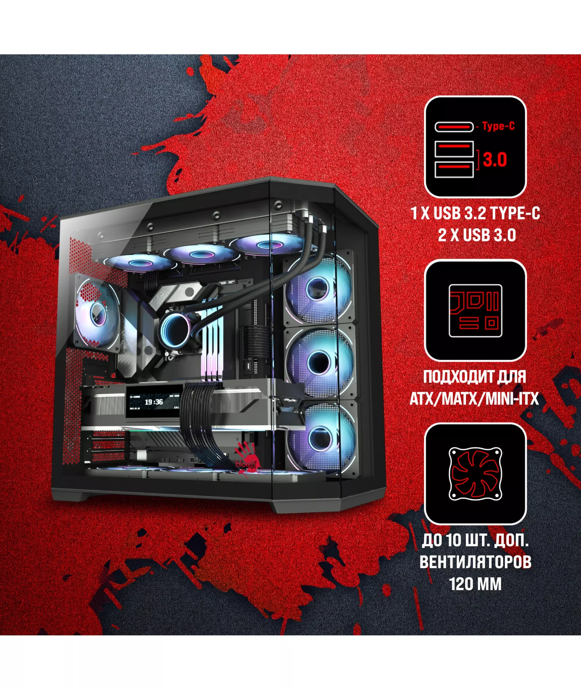 Корпус Bloody BD-CC109 черный без БП ATX 10x120mm 2xUSB3.0 audio [BD-CC109-BK]