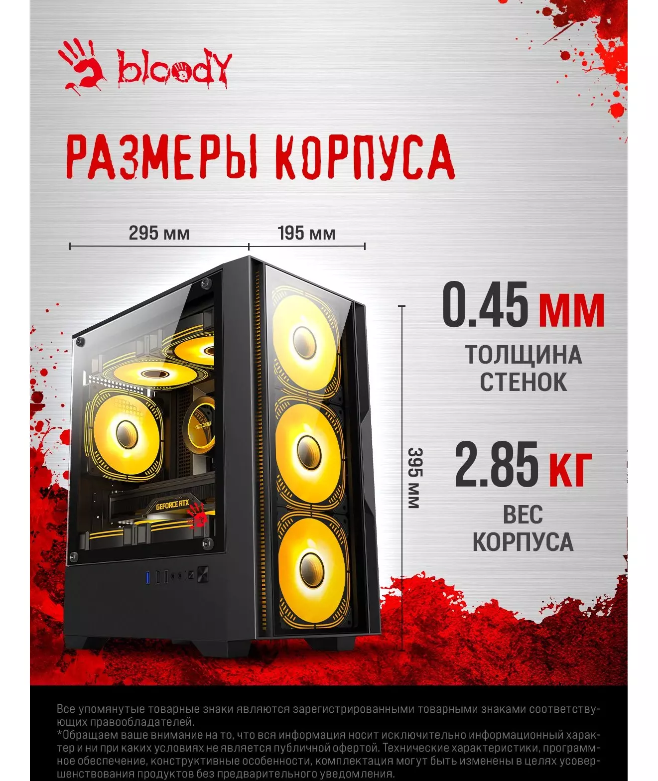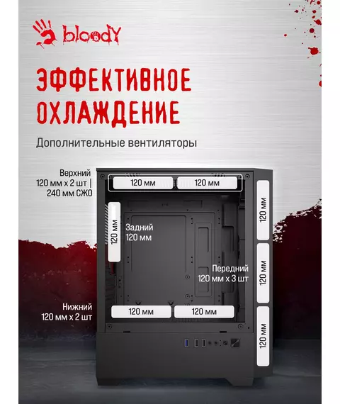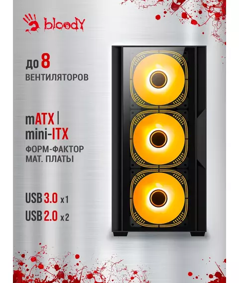 Корпус Bloody CC-123-BK черный без БП mATX 8x120mm 2xUSB2.0 1xUSB3.0 audio bott PSU