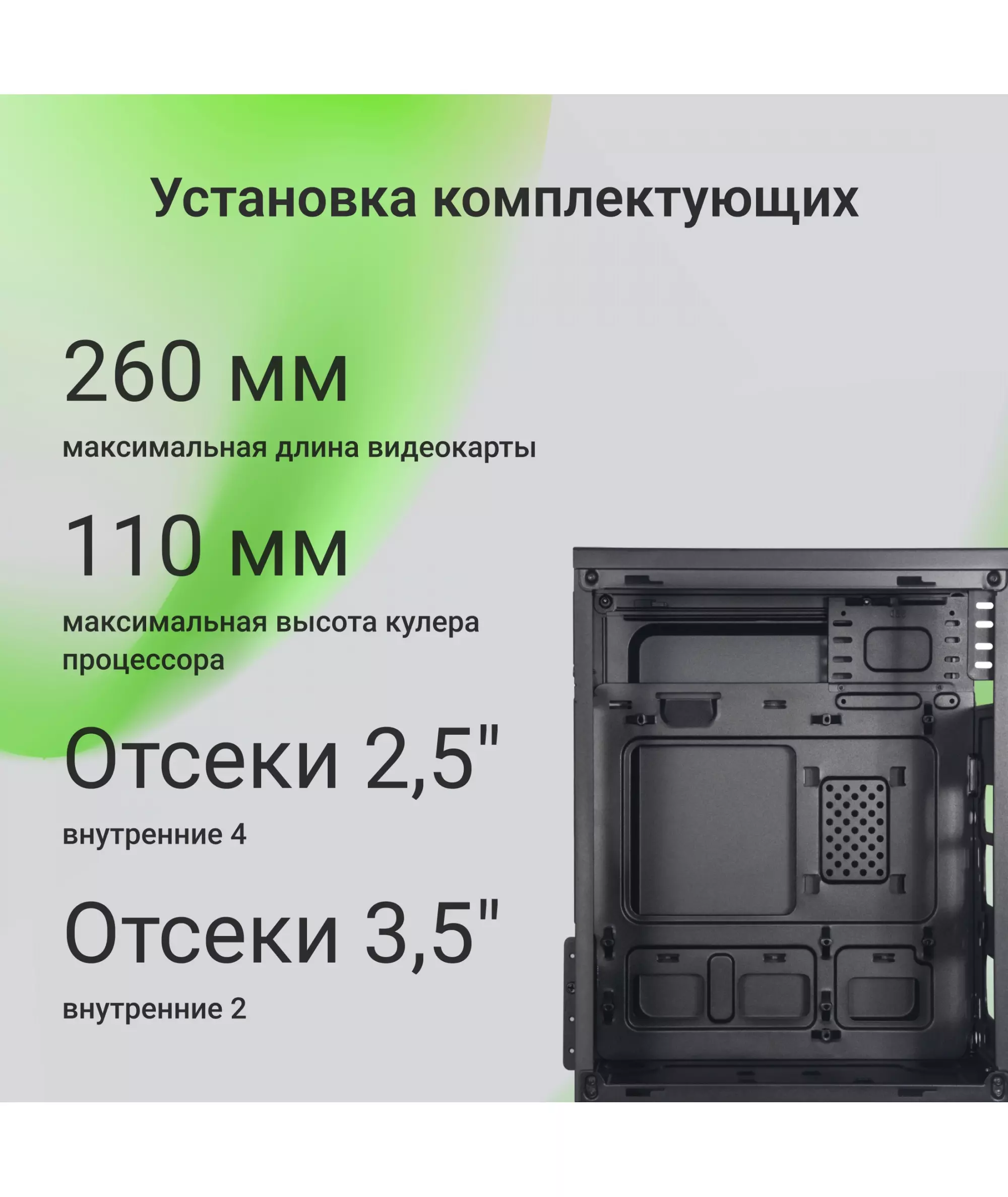 | Максимальная длина видеокарты | 260 мм |