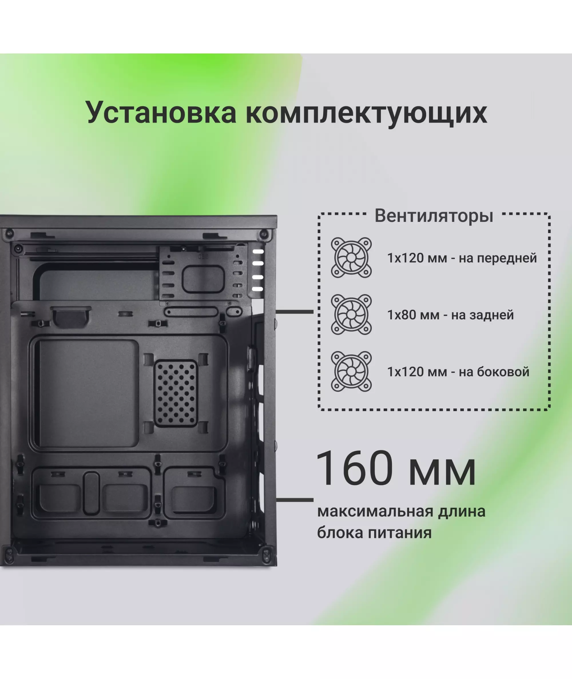 | Форм-фактор совместимых материнских плат | mATX, mini-ITX |