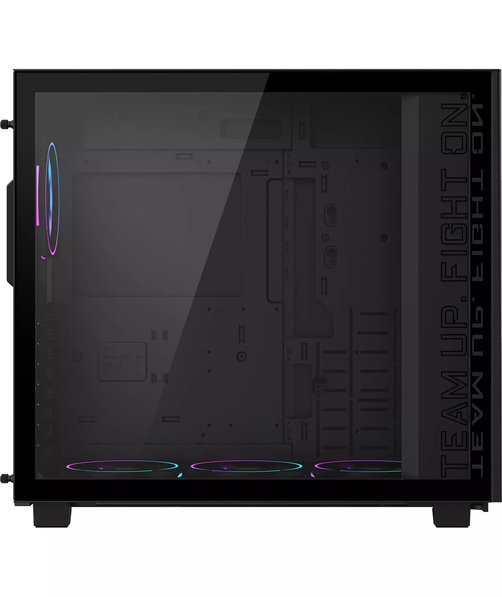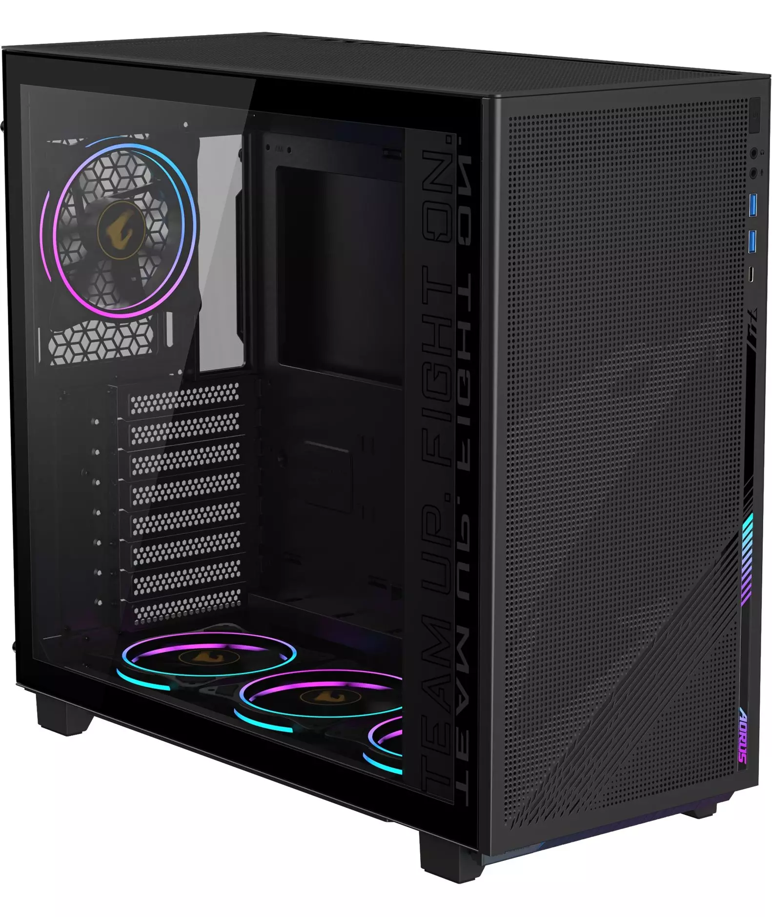 | Особенности | посадочные места верхней панели совместимы с двумя вентиляторами 140 мм;дополнительные 3 места для установки 3.5" HDD вместо вентиляторов нижней панели;встроенный контроллер PWN/ARGB |