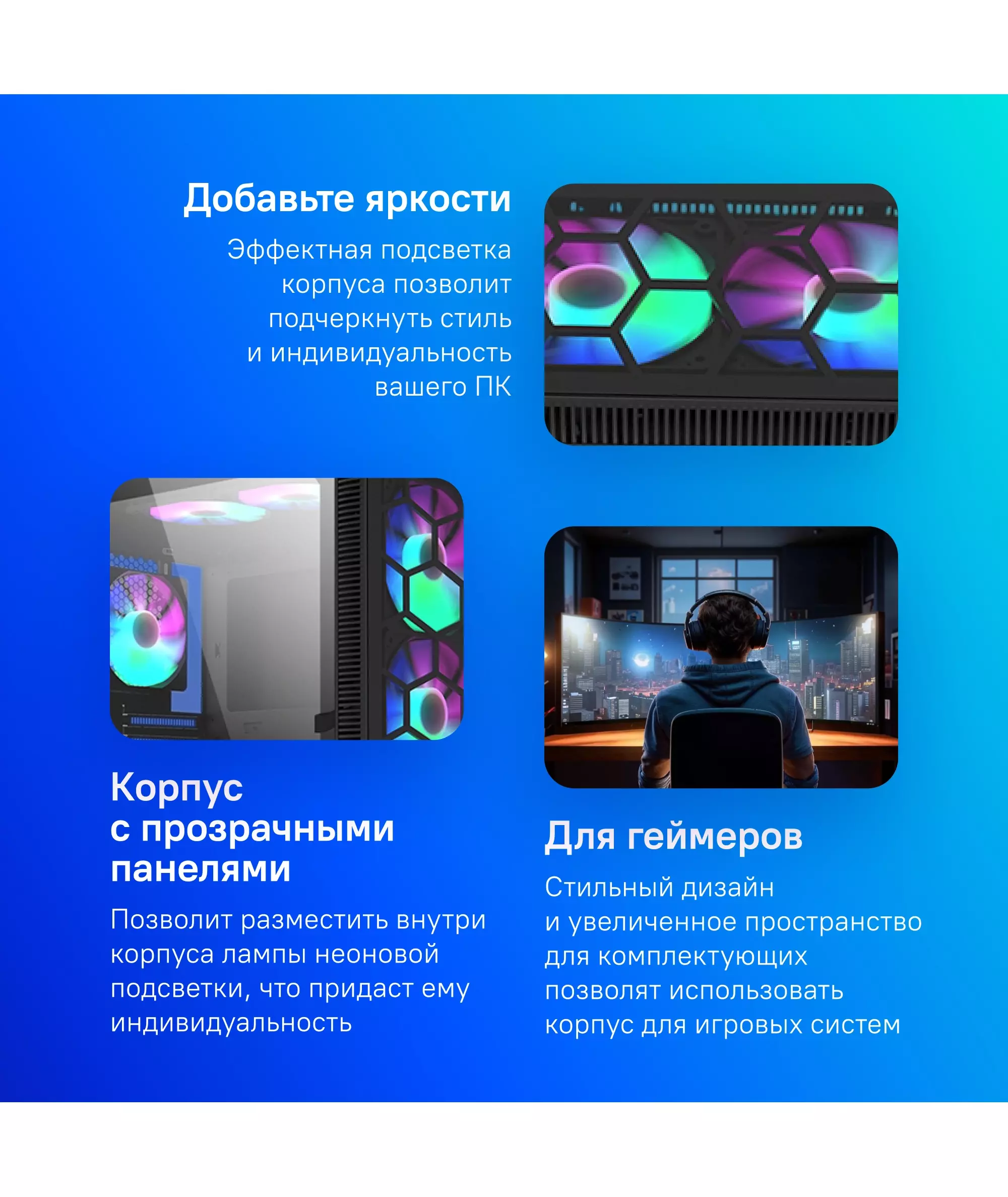 Корпус Montech X3 Glass BL черный без БП ATX 3x140mm 2xUSB2.0 1xUSB3.0 audio