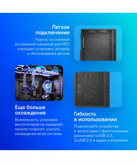| Форм-фактор совместимых материнских плат | ATX, mATX, mini-ITX |